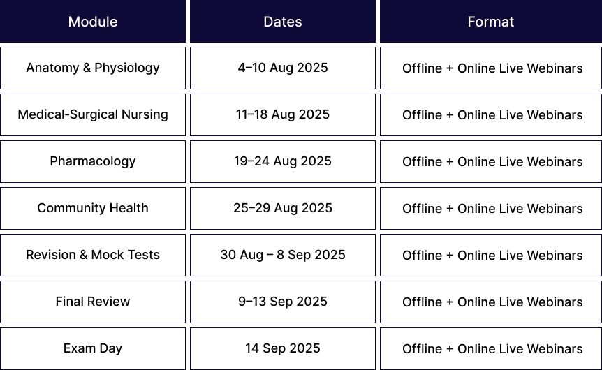 Short, crisp and to the point. I attended both online and offline sessions. Highly recommended for any nurse preparing seriously.